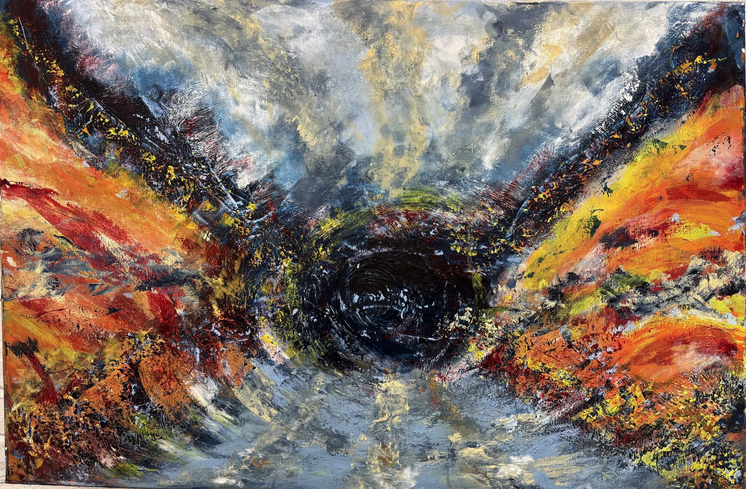 He works mostly in acrylic because its fast-drying properties allow him to explore textures and form - building layers evoking the depth of the landscape.
